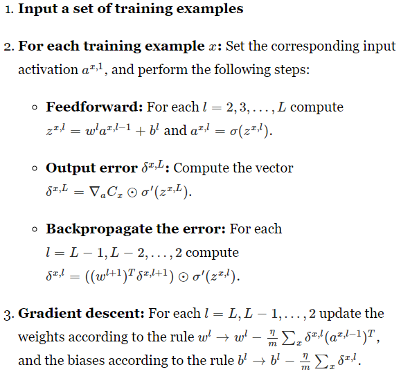 $$\begin{eqnarray}\delta^l_j = \sum_k w^{l+1}_{kj} \delta^{l+1}_k \sigma'(z^l_j).\tag{21}\end{eqnarray}$$写成向量形式就是: