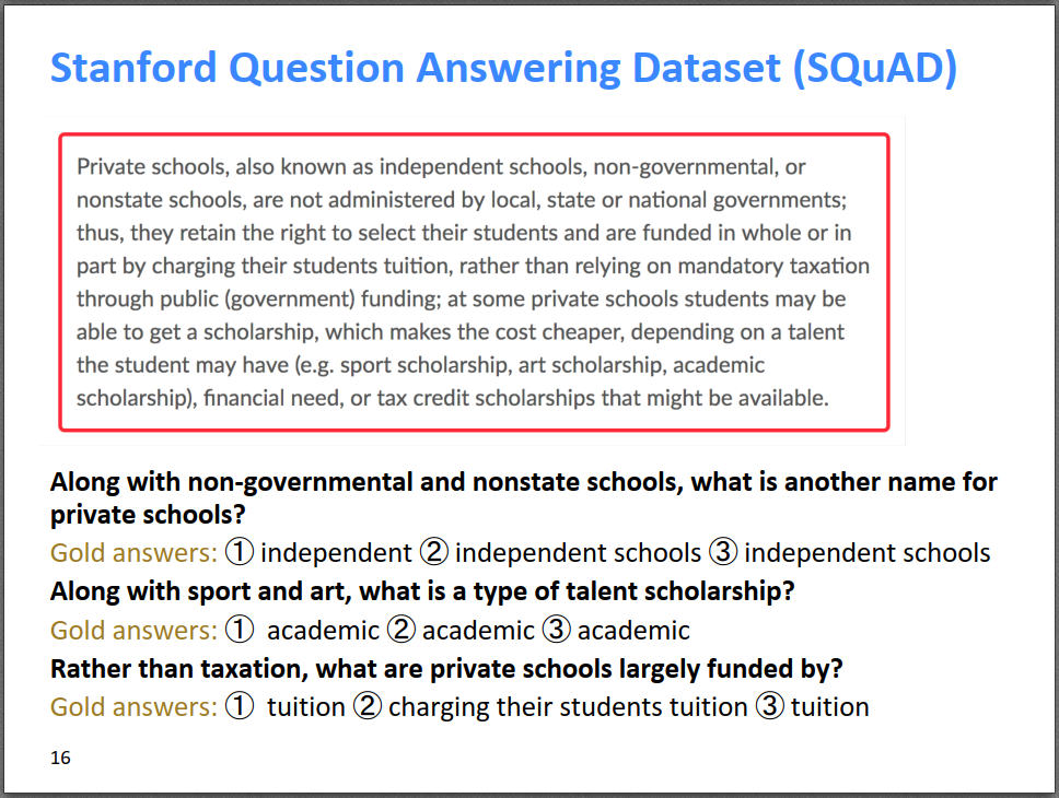 QA的历史可追溯到上世纪七十年代,但真正取得突破性进展也就是最近几年。2015/2016年,几个大规模QA标注数据集的发表,极大的推动了这个领域的发展。这其中比较有名的数据集是斯坦福大学发布的Stanford Question Answering Dataset (SQuAD)。
