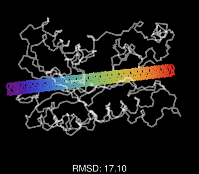 最后,请欣赏作者做的一个动图,展示了蛋白质一维序列在训练过程中,不断调整其三维结构,误差RMSD不断减小,直到和真实结构吻合的过程。