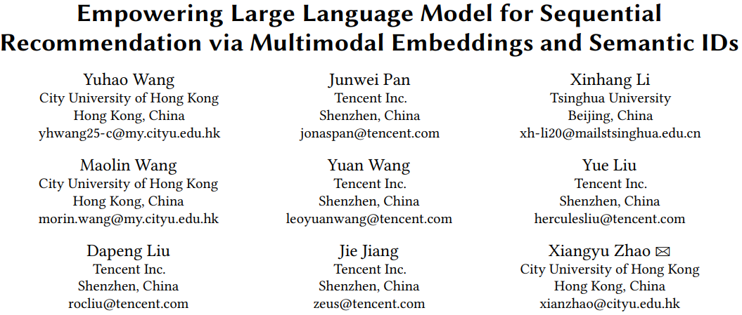 - 论文标题:Empowering Large Language Model for Sequential Recommendation via Multimodal Embeddings and Semantic IDs