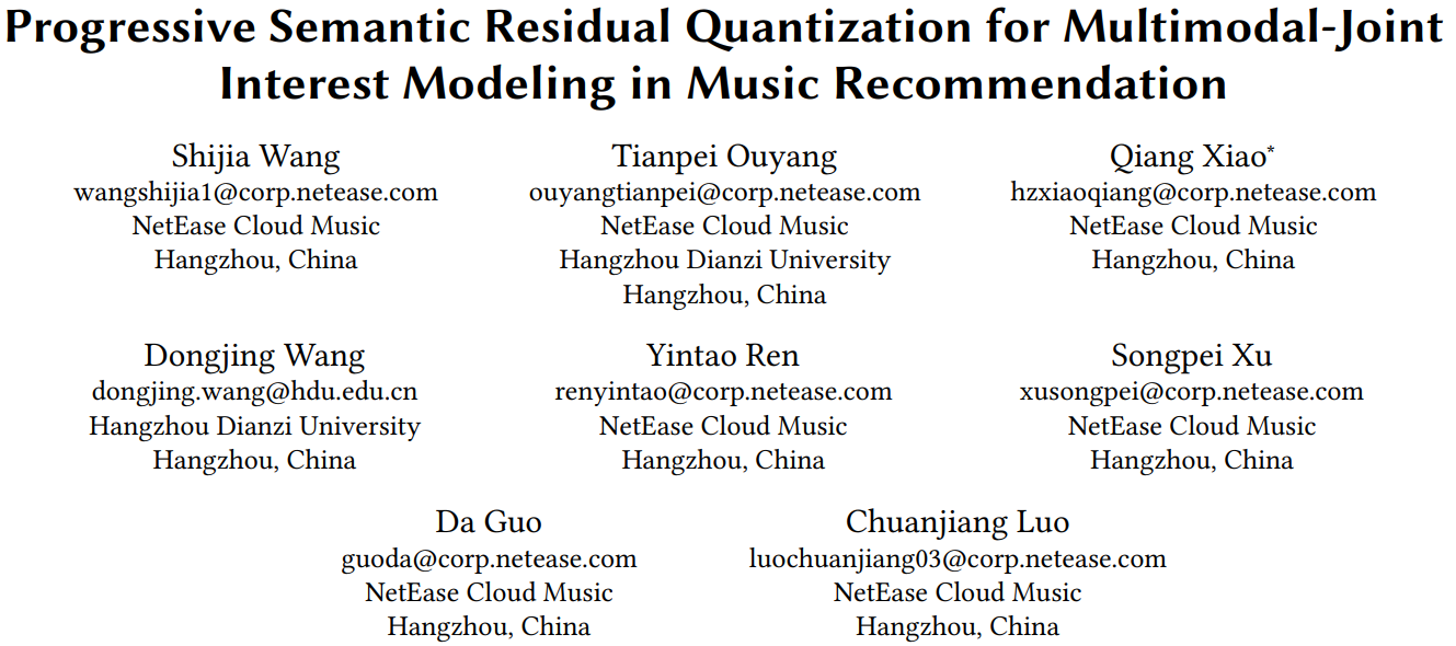 - 论文标题:Progressive Semantic Residual Quantization for Multimodal-Joint Interest Modeling in Music Recommendation