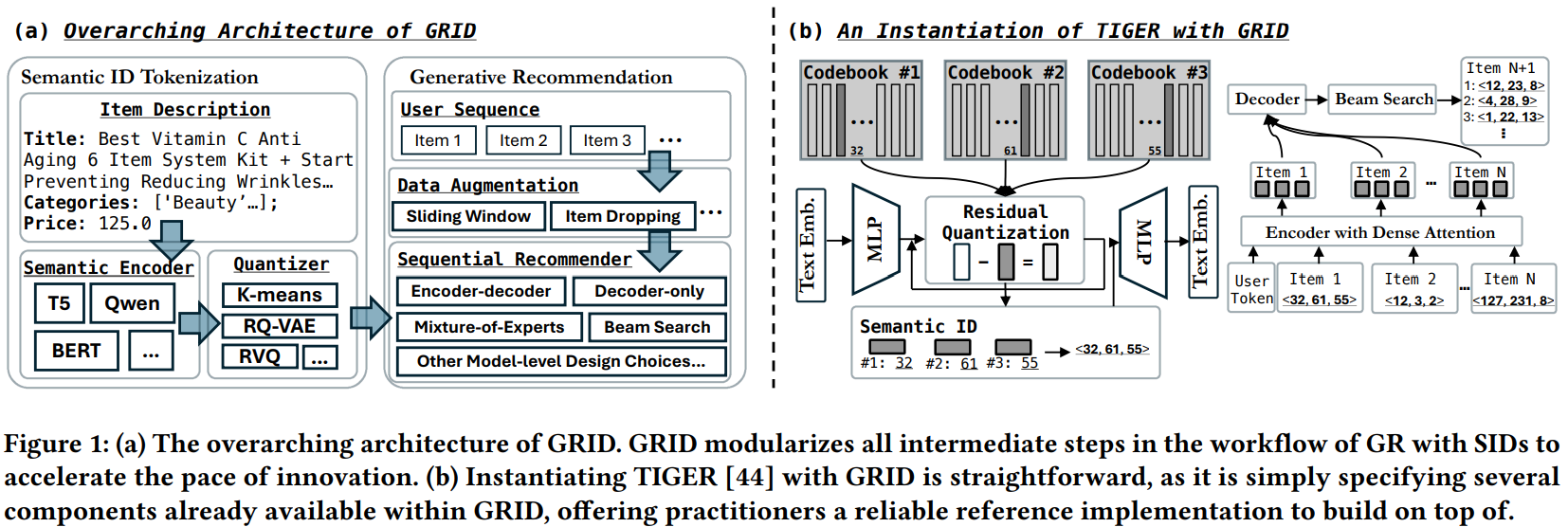 这是CIKM 2025的一篇resource文章,比较简单。核心内容是开源了一个基于semantic id的生成式推荐框架GRID,可以很方便地做各种消融对比实验。