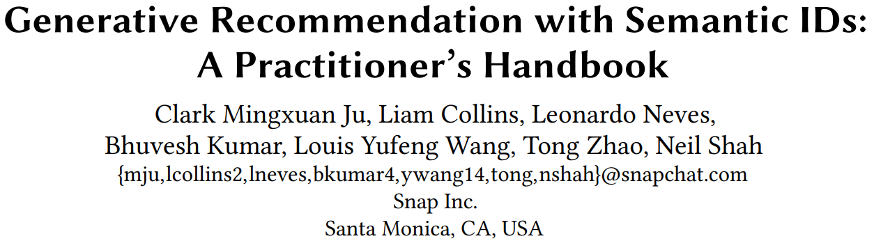 - 论文标题:Generative Recommendation with Semantic IDs: A Practitioner’s Handbook